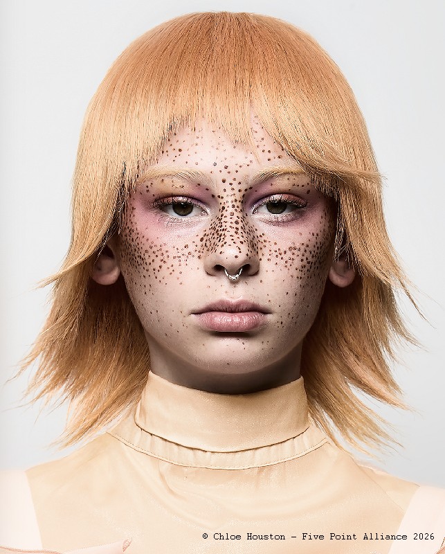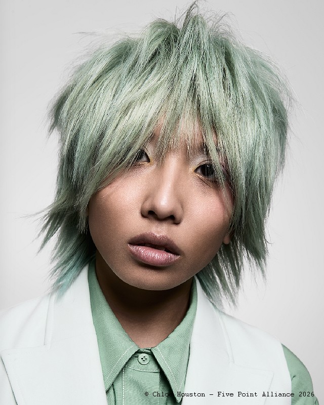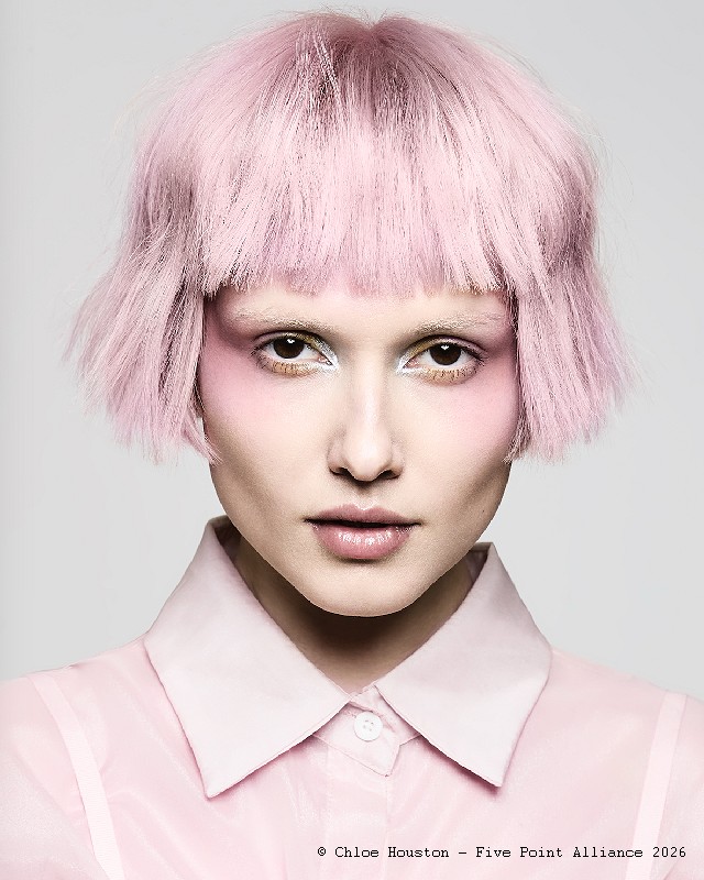 Présentation : « Arise » est la collection révélation de Chloe Houston et un avant-goût de son œuvre à venir. Une grande maîtrise technique a permis de créer une palette de couleurs pastel universelles sur laquelle elle a façonné des coupes de cheveux uniques, des plus courtes aux plus longues. « Arise » est une vision créative affirmée et mature d'une jeune artiste. Images: FPA @fivepointalliance